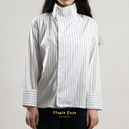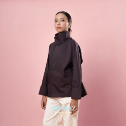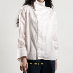 A modern asymmetrical shirt designed with versatility in mind. The collar can be styled two ways, allowing you to switch seamlessly between chic and refined looks