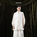 Crafted from cotton embroidery with delicately stitched motifs, this piece brings depth and artisanal character, creating a harmonious balance between classic elegance and effortless charm. The mandarin neckline lends a subtle structure, while puffed sleeves with soft ruffle details add gentle volume and femininity.