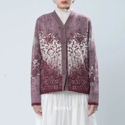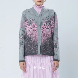 A knitted piece with flattering cinched waist that gently defines the silhouette. Designed with a soft color-gradation effect, creating a sense of depth and movement. The rose pattern delicately integrated into the knit, symbolizing femininity, grace, and timeless beauty. Comfortable yet refined, this piece perfect for both elevated everyday wear and special moments.