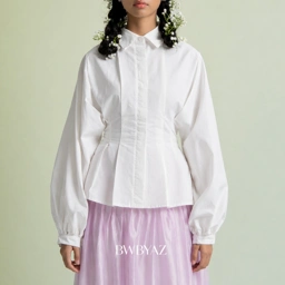 A shirt featuring a concealed front button placket for a clean and refined look. Designed with darts and adjustable ties at the bodice, allowing the fit to be tailored for a more defined silhouette. Finished with long sleeves and structured cuffs, this piece balances structure and flexibility, making it suitable for professional settings and polished everyday wear.