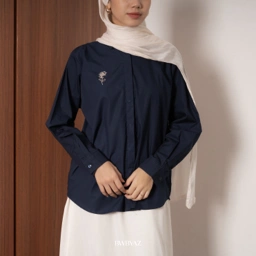 BWBYAZ - Noona Rose Embroidery Shirt Long Sleeve (READY STOCK)