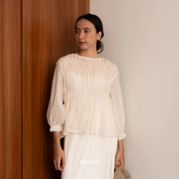 Shakeela Shired Blouse presents an effortlessly elegant look with its luxurious flowy pleats fabric. Designed with delicate shirring details across the bodice, this blouse offers a flattering silhouette that gracefully follows your movement.
