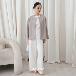 The Suede Outer features a loose fit and minimalist construction. The piping details and yoke accentuate the structure, while the raw edge finishing adds a modern, edgy vibe. Ideal for layering during light winter or for a relaxed look with a refined touch.