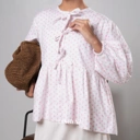 The Anya Puffy Blouse combines playful polka dots with charming front bows, balloon sleeves, and a flattering peplum hem. Made from soft cotton for a sweet and comfortable everyday look.