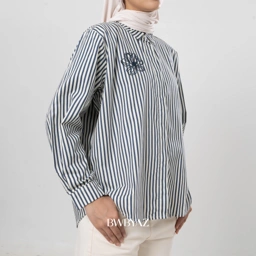BWBYAZ - SAFEA STRIPES EMBROIDERY SHIRT (READY STOCK)
