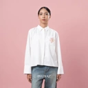 Kaia Bloomy Shirt Boxy silhouette with sharp shoulders and relaxed body fit. A small embroidery on the chest pocket breaks the plain surface with a subtle accent. Estimasi Pengiriman : 28 JANUARI 2026