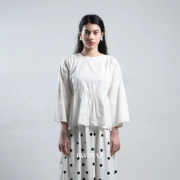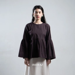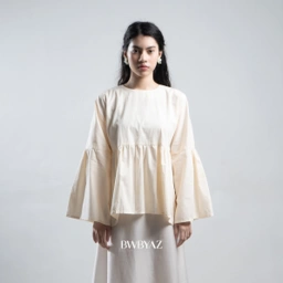 Zeinaa Blouse Oversized, flowy silhouette with an empire cut, giving volume on the lower part. The plain surface highlights the shape as the main focus