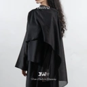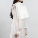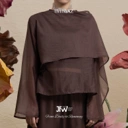 A draped blouse with shawl-inspired layering that adds dimension and poise. The relaxed silhouette gives a sense of understated sophistication.
