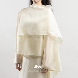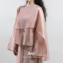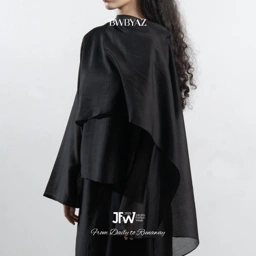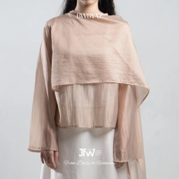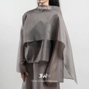 A draped blouse with shawl-inspired layering that adds dimension and poise. The relaxed silhouette gives a sense of understated sophistication.