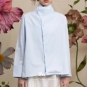 An elevated asymmetrical shirt crafted from crisp paper cotton. The structured texture gives it a modern, airy feel balancing sharp