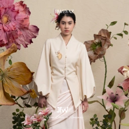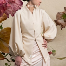 A voluminous top with soft draping and structured puff sleeves. Its sculptural form creates a statement of modern femininity— elegant, graceful, and timeless.