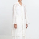 The Cecil Sheer Tunic exudes effortless elegance with its flowy Luminous Sheer Tencel fabric that feels light and breathable. Featuring a graceful loop and tie detail at the back and a softly hemmed finish, it pairs beautifully with skirts or pants for a polished, feminine look—perfect for any occasion