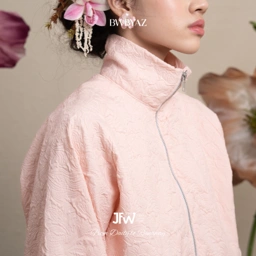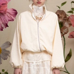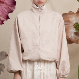 A voluminous jacquard jacket that combines structure and softness. With its gentle sheen and relaxed cut, it adds a modern edge while keeping a sense of cozy sophistication.