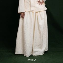 Made from premium embossed fabric, this skirt is defined by its signature wave-cut paneling around the hem. A full elastic waist ensures ease, while its structured texture and gentle drape exude contemporary femininity with a touch of whimsy.