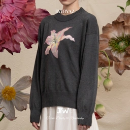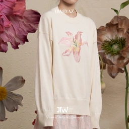 A cozy knit sweater adorned with a bold floral motif. Effortlessly casual yet full of personality, it brings warmth and artistic flair to everyday looks.