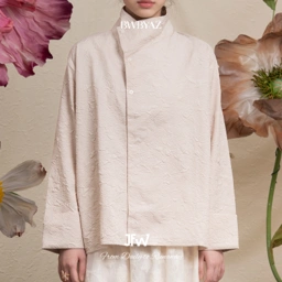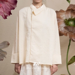 An elevated twist on a classic shirt, designed with asymmetrical lines and subtle jacquard texture. Modern sophistication meets quiet statement.