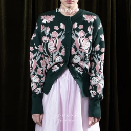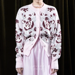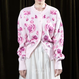 Crafted From Premium Cotton Knit, This Loose-Fit Cardigan Features Ribbed Detailing Along The Neckline, Cuffs, And Hem For A Clean, Structured Finish. An Original Rose Pattern Adds A Feminine And Sweet Touch, Giving The Knit A Distinctive Character That Sets It Apart While Maintaining A Soft, Elegant Feel.