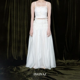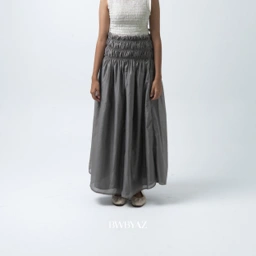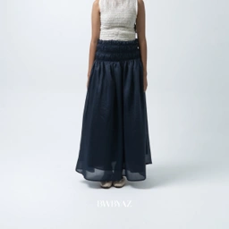This elegant skirt is crafted from lightweight sheer fabric, creating a soft and flowy silhouette that moves beautifully with every step. Designed with a smocked elastic waistband, it offers a flexible and comfortable fit while adding subtle texture and feminine detail. The gathered construction enhances volume, giving the skirt a graceful and airy drape. Perfect for both casual and elevated styling, this piece blends comfort with timeless sophistication.