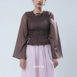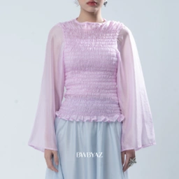 A top featuring full elastic smocking across the bodice, creating a flexible and body-hugging fit. Designed with flared sleeves that add movement and a soft feminine touch, this piece offers both comfort and visual interest. The balanced silhouette makes it an easy choice for everyday wear while still feeling elevated and stylish.